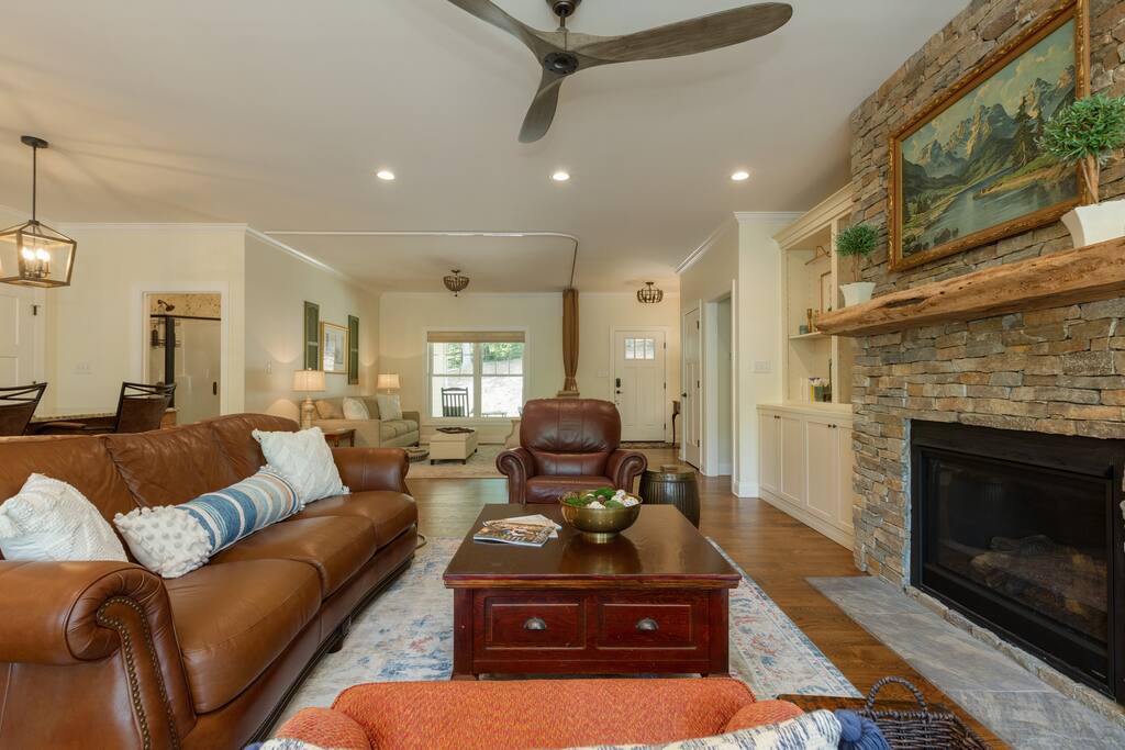 Masia moderna amb vistes a les muntanyes! A només 6 minuts de la carretera i a 12 minuts del centre d'Asheville. Les vistes que té permeten gaudir d'albades i postes de sol impressionants! Gaudeix dels voltants des del nostre porxo frontal envoltant, el porxo posterior aïllat o el bonic pati de pedra amb una gran zona de foguera i un spa de luxe! A l'interior, la nostra abundància de finestres permet relaxar-se amb llum natural i vistes a tot arreu. Una autèntica escapada a la muntanya a prop de la ciutat!