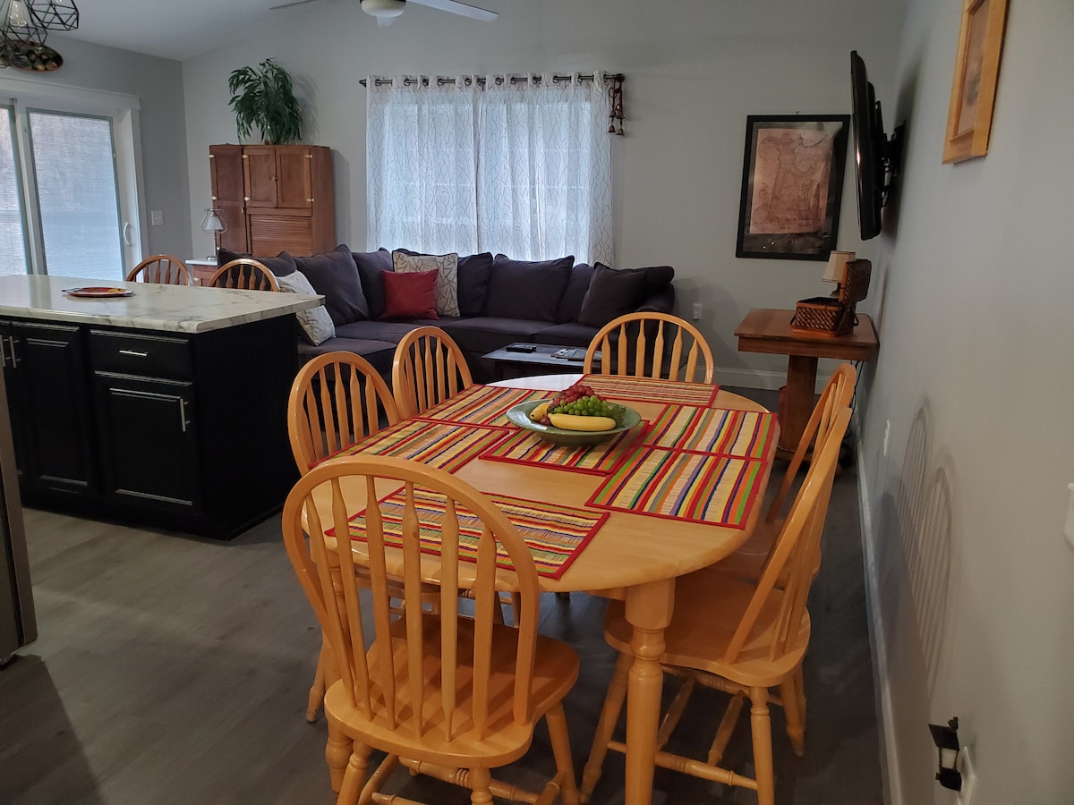 Zona del llac Rough River, apartament acollidor i tranquil, en una comunitat cristiana, a McDaniel's, Kentucky. A prop del parc estatal Rough River. Zones d'acampada properes, a 60 minuts del parc nacional de Mammoth Cave. Platges del llac a prop. A 45 minuts de Glendale. No hi ha espai per a vaixells ni remolcs, només per a dos vehicles per apartament. Un bon lloc per allunyar-se del soroll de les grans ciutats, ideal per descansar i gaudir de la natura. La nostra adreça és 14409 South Hwy 259, Apt. 5, Leitchfield, KY 42754 (EUA)