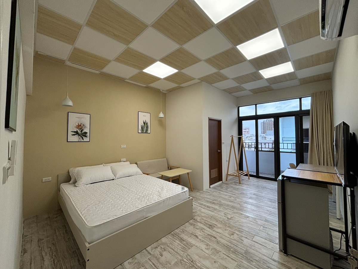 雙人小包棟,日系衝浪度假小屋,獨立一房一廳一衛含廚房,150吋投影機,洗脫烘,門口可停車