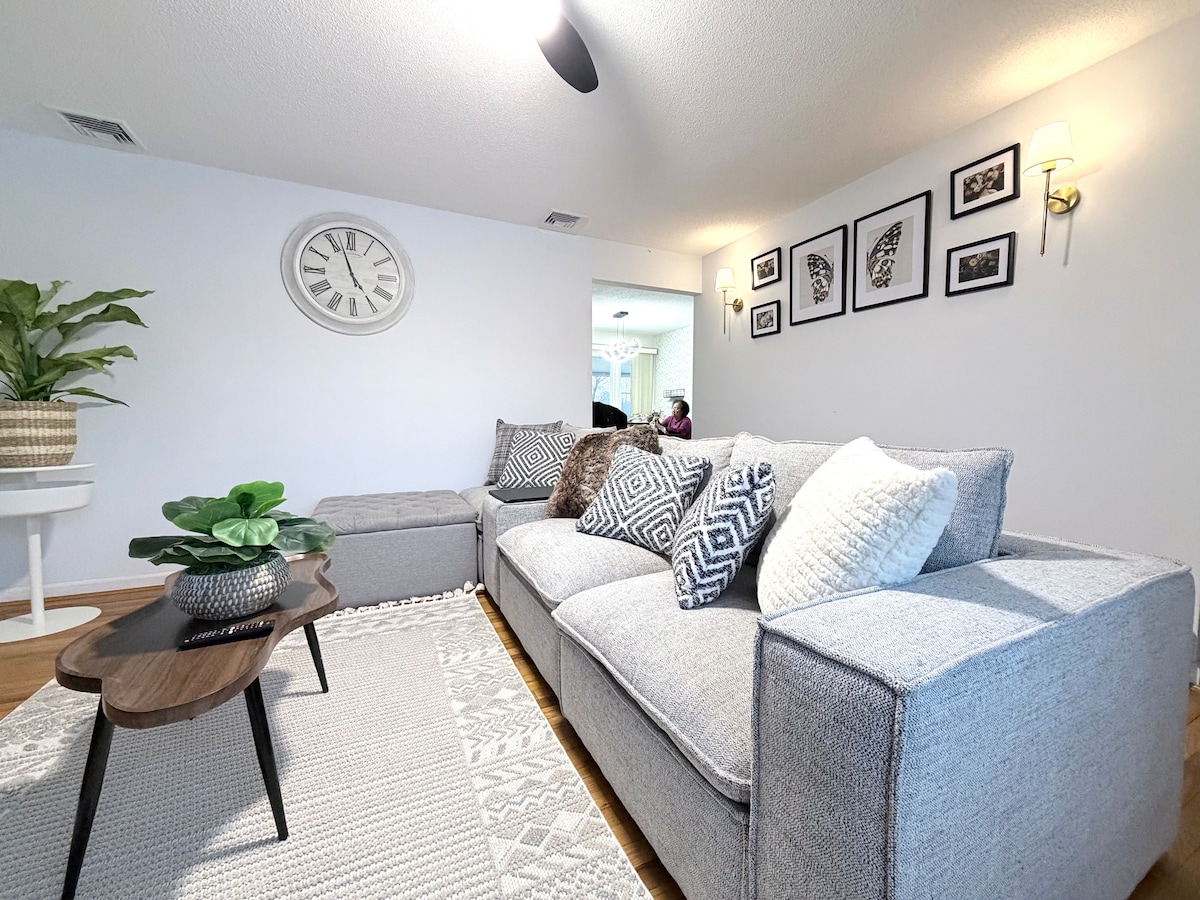 La nostra casa de 3 dormitoris recentment renovada ofereix una estada còmoda i còmoda. Perfectament situat amb fàcil accés a les botigues de comestibles, centres comercials, hospitals i parcs, és una base ideal per al teu viatge. El nostre allotjament disposa d'un garatge per a 2 cotxes, aparcament ampli, cuina i banys impecables, minibar, estris de cuina, wifi gratuït i rentadora/assecadora. Allotja't amb el nostre espai de treball exclusiu i relaxa't als nostres espaiosos dormitoris. Fes la reserva ara per gaudir d'una experiència lluny de casa teva!