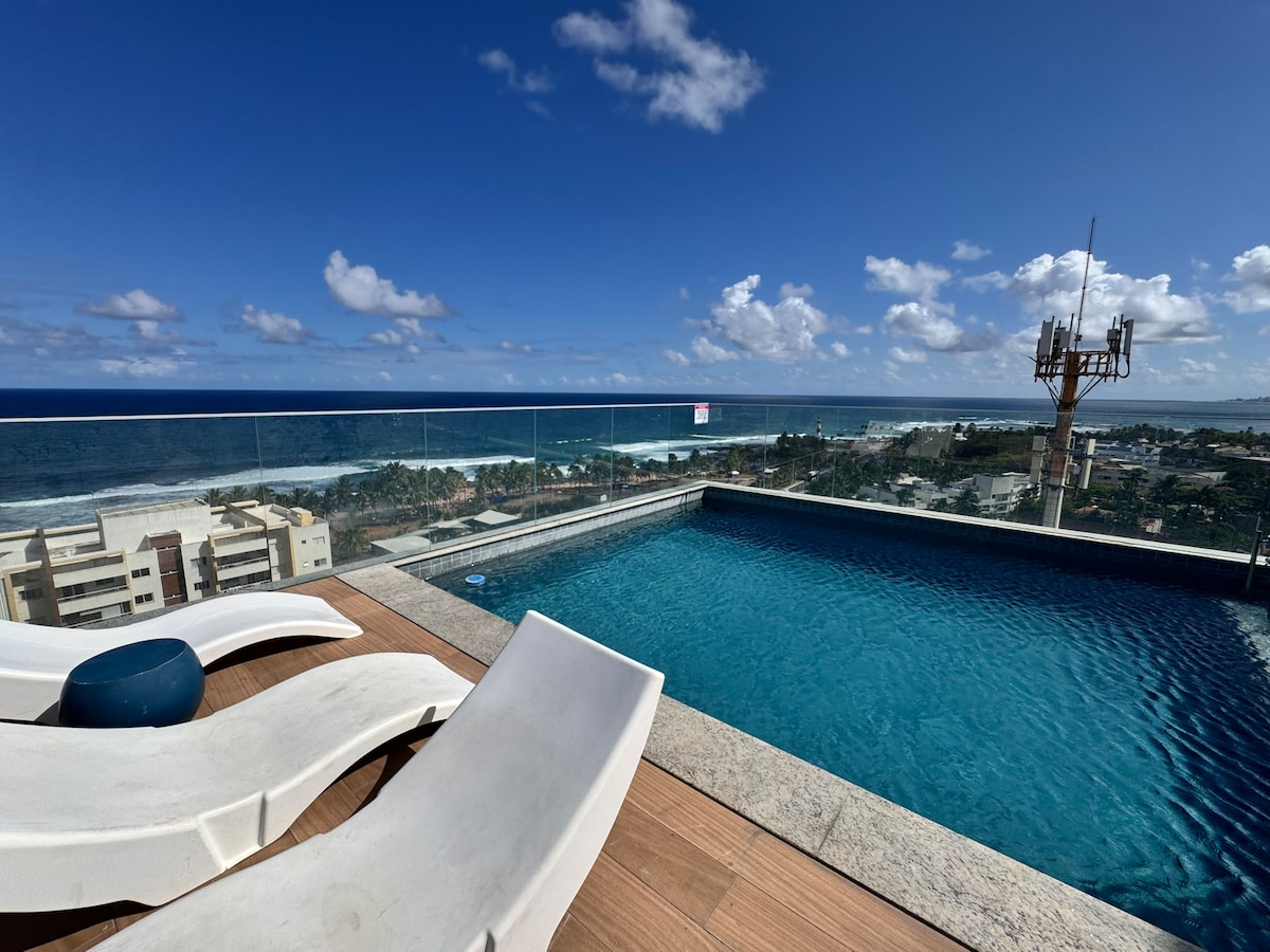 Comoditat, estil i una ubicació privilegiada a pocs passos del mar! Aquest estudi totalment equipat combina disseny contemporani i funcionalitat en un dels barris amb més encant de Salvador. A només 300 metres de la platja d'Itapuã, disposa de llit doble, sofà llit, televisor intel·ligent, aire condicionat, una cuina totalment equipada i un balcó amb vistes a la ciutat i al mar. Les zones comunes amb piscina, gimnàs i espai de cotreball milloren l'experiència. Reserva la teva estada ara i descobreix el millor d'Itapuã!