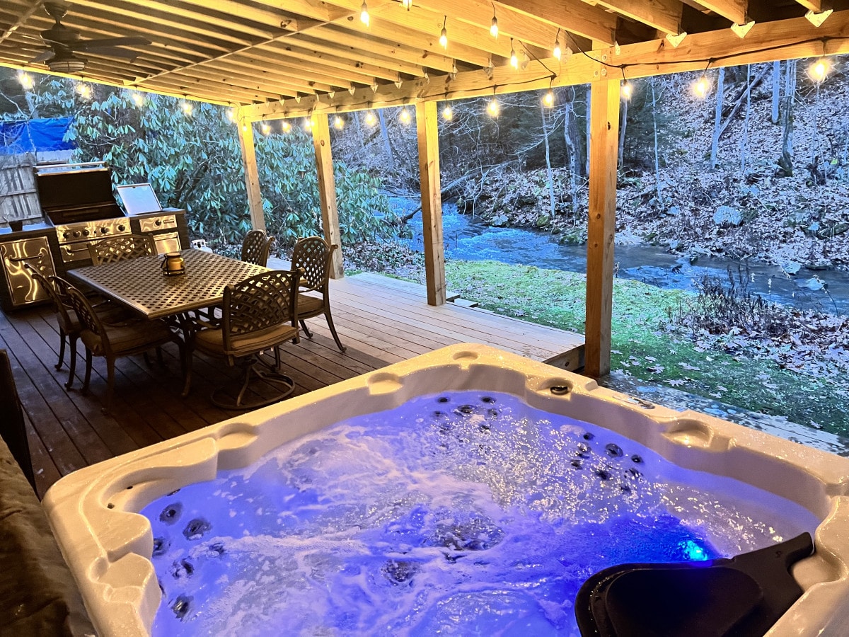Cozy Streamside Cottage, Pavilion, Hot Tub Firepit