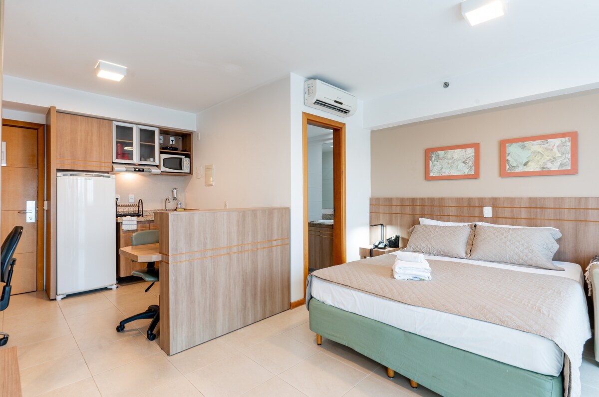 Allotja't en un pis sofisticat, còmode i ben situat, a prop de tot el que vols visitar. Situat al sector hoteler del nord, al cor de Brasilia, és a pocs minuts de les principals atraccions turístiques. L'espai és complet i acollidor, amb un llit doble, assecador de cabells, forn, planxa, bullidor elèctric i altres articles dissenyats per garantir la comoditat i el benestar durant l'estada.