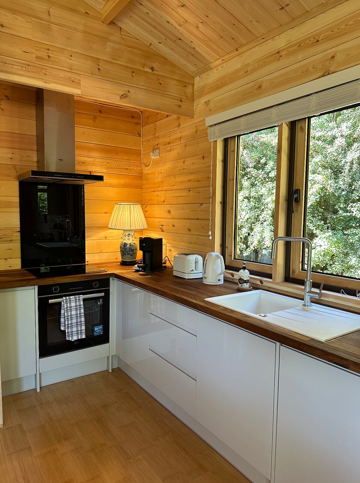 La cabana de Fir's Retreat Shepard és l'escapada perfecta per a qualsevol temporada. Mira les estrelles mentre gaudeixes de la banyera d'hidromassatge o acollir-te al voltant del fogó de llenya. Ja sigui una escapada romàntica o una aventura en família. Aquest meravellós amagatall es troba en un terreny privat i segur perquè puguis gaudir d'unes vistes idíl·liques de la posta de sol en jardins aptes per a gossos.