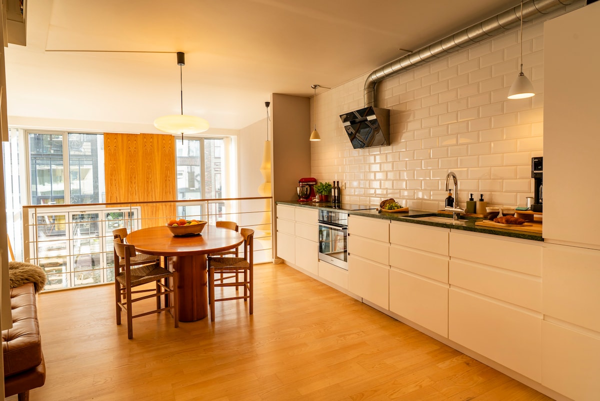 Apartament privat únic i magnífic en una ubicació immillorable al cor de la zona de mitjana edat de Copenhaguen. La teva pròpia "casa unifamiliar" amb entrada privada des d'un carrer lateral. Un luxe d'alta gamma repartit en més de 140 metres quadrats, t'allotges en un apartament de luxe de fusió de la Galeria d'art. Mobles de disseny, cuina construïda a mà, terres de fusta, sostres alts, art de menys. Finca històrica construïda el 1789, una vegada un teatre Aquest allotjament també és perfecte per a reunions de negocis o estades de feina de períodes més llargs o curts