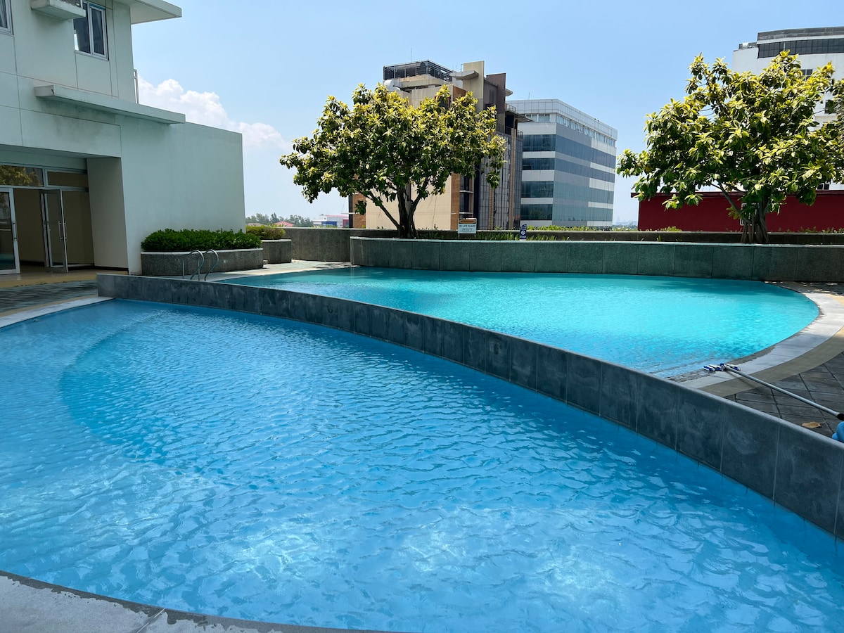 Gaudeix de la comoditat tropical i dels espais verds de la ciutat. Allotja't en un lloc tranquil però cèntric al sud del metro (Filinvest City, Alabama, Muntinlupa). Dins del complex de l'hotel/centre comercial i a quatre passes de centres comercials, supermercats, oficines, escoles i hospitals. Es pot accedir a través de les autopistes des de l'aeroport de Manila. Gaudeix del joc Monopoly, jocs de PS5, Netflix, Youtube, canals de televisió o simplement utilitza la wifi ràpida de 350 Mbps. Piscina (600 PHP/ús) i aparcament (300 PHP/dia) disponibles amb un càrrec addicional (subjecte a canvis).