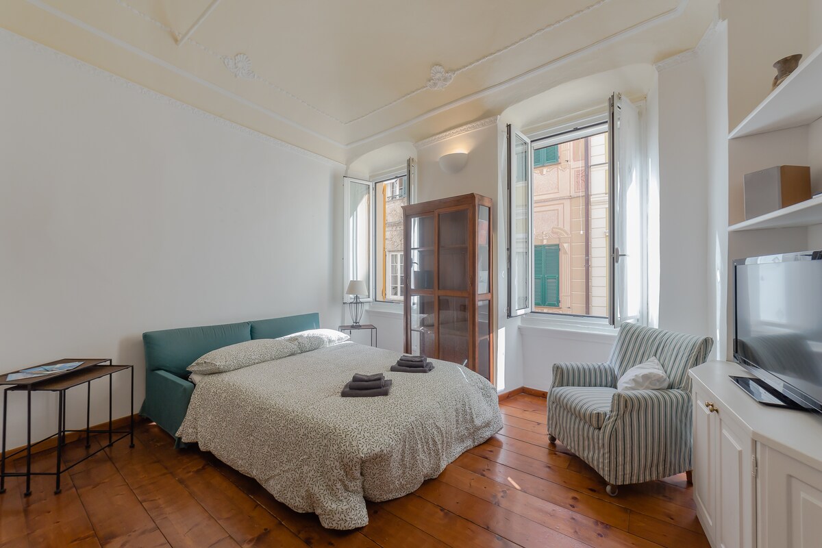 Al centre de Finale Ligure, a 3 minuts de botigues i de la platja a peu, aquest bonic apartament (110 m2) pot allotjar fins a 7 persones. Dues habitacions dobles, i una habitació amb tres llits per a dues famílies o un grup de 7 persones còmodament. A la 3a planta amb ascensor, està banyada de llum i els seus tres balcons permeten gaudir de l'exterior. Una còmoda sala d'estar, una cuina totalment equipada i un bany us faran sentir com a casa.