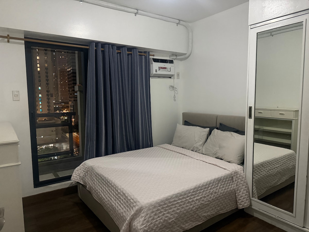 Gaudeix d'impressionants vistes del pis 17 des d'aquesta elegant unitat de cantonada d'1 habitació de 29 metres quadrats a Mandaluyong, perfecta per a activitats de feina, nòmades digitals o relaxació. A poca distància a peu de Greenfields, SM Megamall, Shangri-La i MRT Shaw, Casa Eleganza és la teva base ideal per explorar Manila. Serveis destacats: Llit ✔«queen size» + sofà llit (4 persones) Televisor intel·ligent de ✔55 polzades amb Netflix i Spotify Wifi ✔de 100 Mbps ✔Balcó amb vistes panoràmiques ✔Piscina, gimnàs a l'aire lliure, camí per córrer ✔A prop de botigues, restaurants i trànsit ✔Cafè, aigua i articles de bany gratuïts