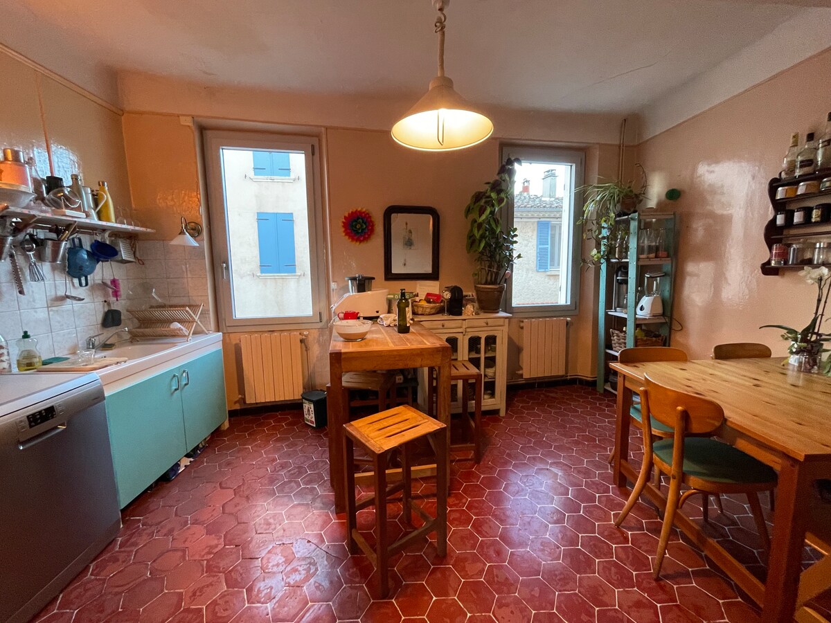 Preciosa casa al cor del poble de Flassans sur Issole. Ambient vintage i funcional. Casa acollidora, trobaràs joguines, jocs i llibres per a totes les edats. Al jardí, gaudeix d'una terrassa a l'ombra per prendre begudes i àpats agradables. També hi ha un ambient agradable a la nit. Wifi disponible! Et donem la benvinguda a casa nostra!