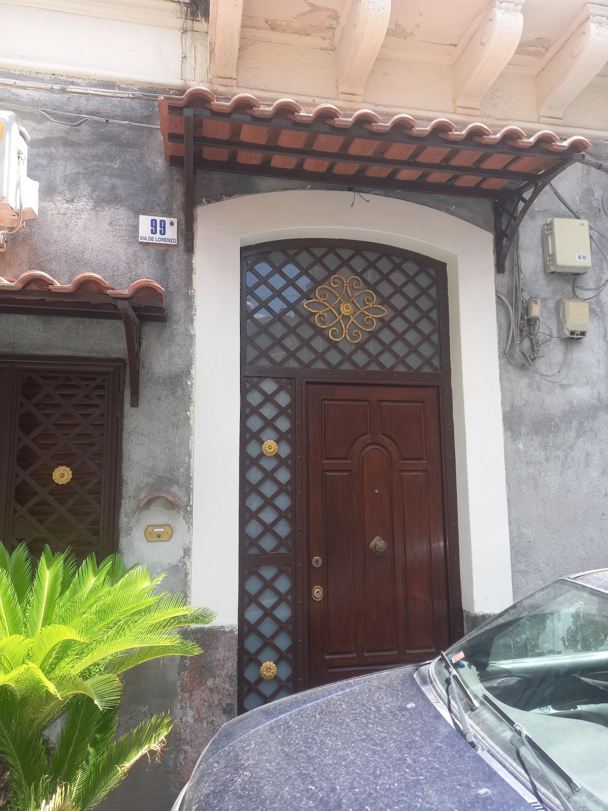 La casa ha estat totalment reformada i es troba en un sol nivell en una planta elevada d'un apartament històric al centre de Catània i consta de 3 habitacions còmodes (amb aire condicionat), dos banys i un gran saló amb sofà llit contigu a la cuina. Des de la sala d'estar es pot accedir des d'una gran terrassa exterior on trobaràs un bonic racó de verd on pots allotjar-te i menjar amb la màxima tranquil·litat en les càlides nits d'estiu a Catània.