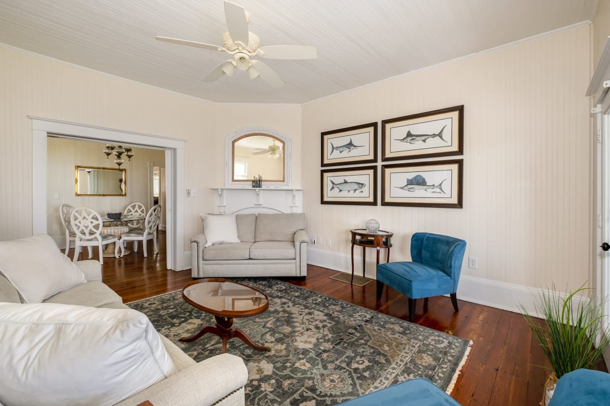 Welcome to the Seaglass House located in the heart of downtown Melbourne. 1929 completely restored home provides all modern comforts with the charm of old Florida. 5 bedroom 3 bath home. 5th bedroom is a detached bunk room with a bathroom . Driveway/parking walking distance to all downtown restaurants, coffee shops and entertainment. The home has outdoor seating/ side screened porch and fire table in back with golf putting green. Outdoor shower when returning from the beach five minutes away.