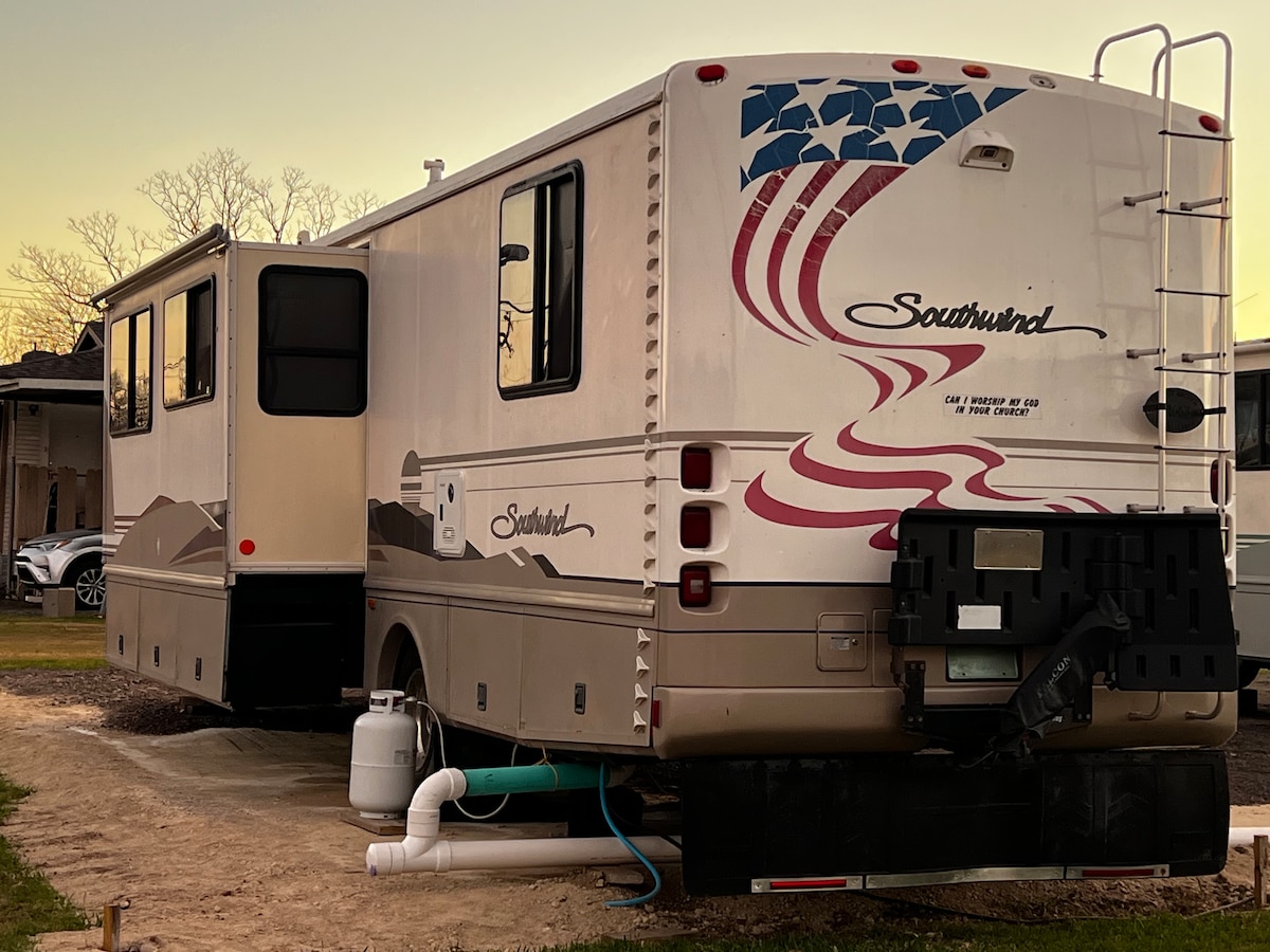 Descomptes setmanals del 10 % i mensuals del 30 %. Una autocaravana de classe A actualitzada amb una lliscadissa que es manté al pati obert per viure-hi. S'hi ha instal·lat una nova bomba de calor dividida AC (tant per a refrigeració com per a calefacció), escalfador d'aigua automàtic, nevera i cuina d'inducció. També hi ha sistemes de calefacció de gas amb caldera, un forn i un televisor intel·ligent Roku. A la sala de magatzem del pati hi ha una rentadora i una assecadora compartides.