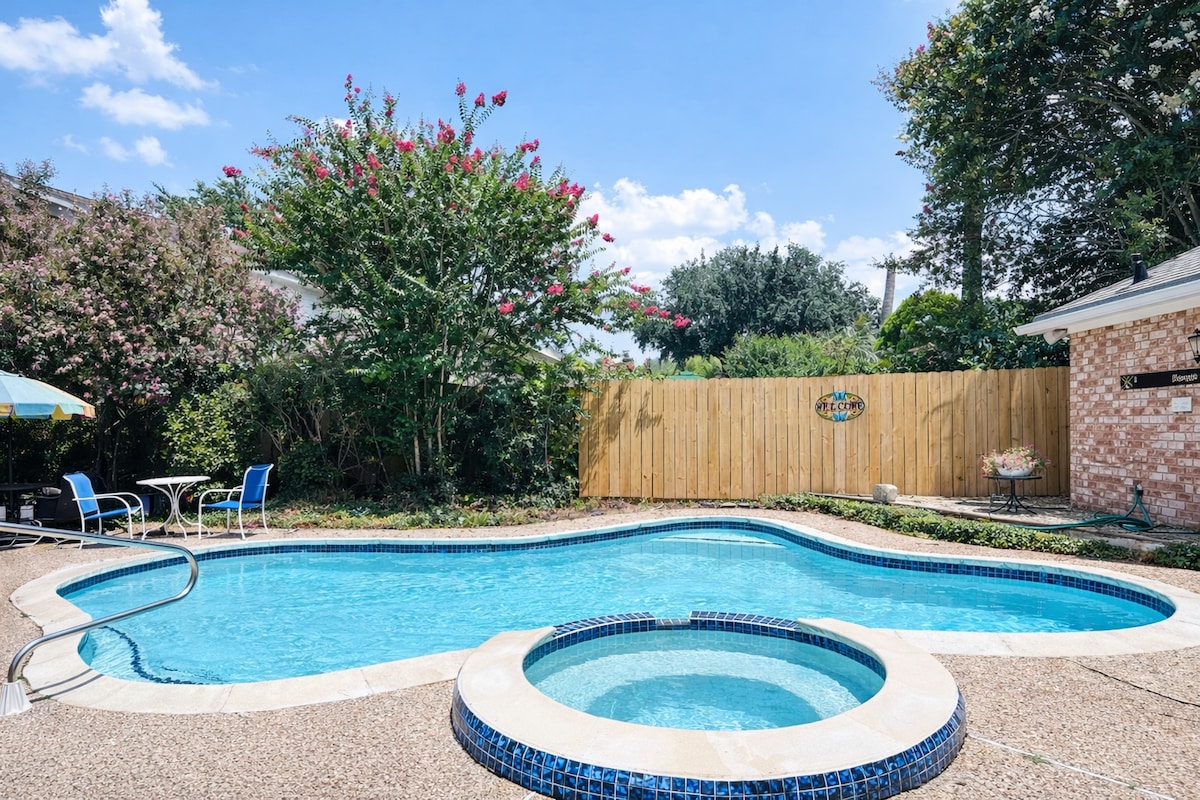 Escapa't a aquesta casa unifamiliar d’estil loft al bell mig de tot: la Galeria Vittorio Emmanuele II, el centre de la ciutat, el centre mèdic, l’oferta d’oci nocturn, l’NRG Stadium, museus i restaurants a pocs minuts. Gaudeix del llit «king» extragran i relaxa’t a la banyera d’hidromassatge per a dues persones. A la planta de baix hi ha un matalàs inflable «queen» amb capa superior per al confort (si cal) i .5b Televisors intel·ligents, cuina completa, rentadora i assecadora, llar de foc, pati i balcó perfectes per relaxar-se o entretenir-se. 2 piscines, pista de tennis i aparcament cobert. Ideal per a parelles, escapades romàntiques o una escapada de cap de setmana per relaxar-se. ✨