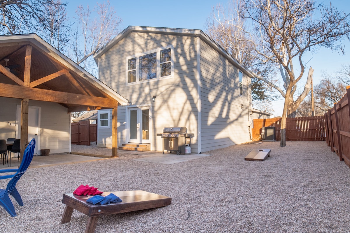 A poca distància a peu de TCU, botigues i restaurants. Els dos dormitoris queen tenen el seu propi bany privat. Internet de fibra òptica ràpid. Sofà, llit i taula de cuina nous el 2021. Et sentiràs com a casa relaxant-te en aquesta acollidora casa dels anys 40 amb millores i serveis moderns. La casa és apta per a nens, incloent-hi molts jocs i un pati per jugar. Els televisors intel·ligents tenen YouTube TV amb un DVR per gravar esdeveniments esportius i pel·lícules, HBO Max i Apple TV.
