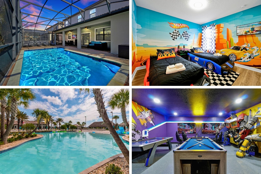 La ubicació no pot millorar! Al costat de Disney Parks and Restaurant Row! Aquest allotjament tancat i vigilat és perfecte per a viatges en família. T'enamoraràs del nostre arbre de 12 peus durant tot l'any decorat amb bon gust per temporada. La sala d'acampada de Mickey, l'habitació temàtica Frozen, l'experiència de Nadal de la caseta durant tot l'any i 2 habitacions modernes addicionals amb llit «king size» perfectes per a parelles. He mencionat l'impressionant cinema/sala de jocs Avengers Home i la piscina extragrande?