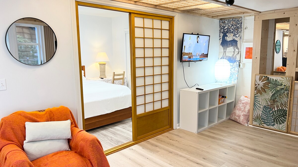 Pis per a un màxim de 5 persones, una habitació amb llit de matrimoni i una habitació amb dos sofàs llit amb matalassos individuals adequats com una altra habitació , cuina, pati i bany, aire condicionat, etc. Pis per a un màxim de 5 persones. Un dormitori amb un llit queen i l'altre és una sala d'estar que té dues lliteres, pati, cuina i bany. El pis es troba a la part de darrere de casa nostra, però és independent. Distància des de A 16 quilòmetres DE L'AEROPORT MCO 12 milles - Disney/Universal 8 milles - Seaworld A prop de supermercats, etc.