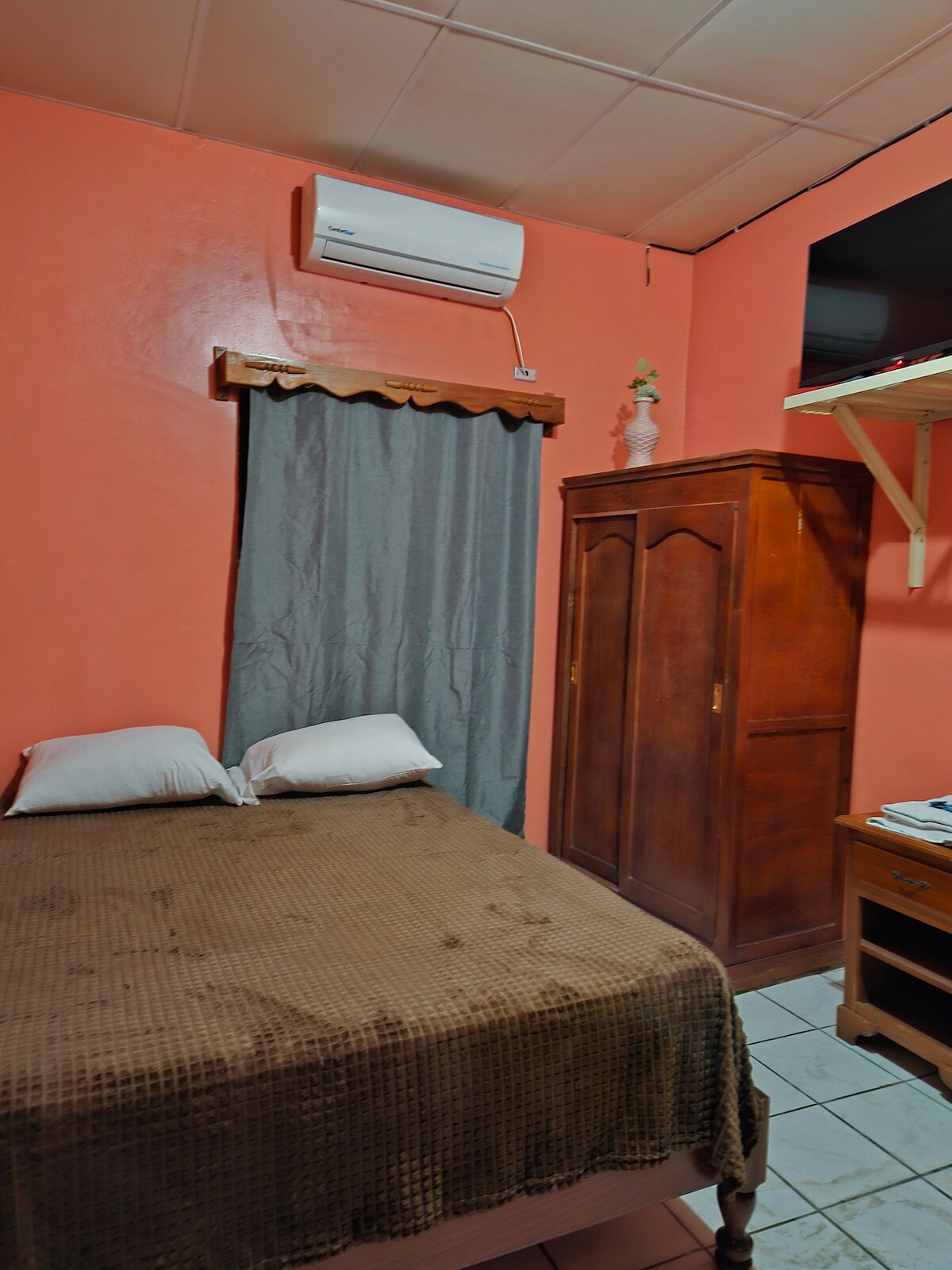 T'oferim una habitació tradicional, trobaràs una taula per treballar, és especial per a estades llargues o curtes i per a persones amb pressupostos de tipus alberg amb la diferència que el meu espai és privat. Inclou: llit doble, bany privat, wifi, televisió per cable, aire condicionat. Estem a 8 km de l'aeroport internacional de Palmerola i a pocs minuts del centre històric de Comayagua. Situat en una zona comercial amb accés a una zona comercial, bancs, centre comercial, hospital, universitat, Comayagua.