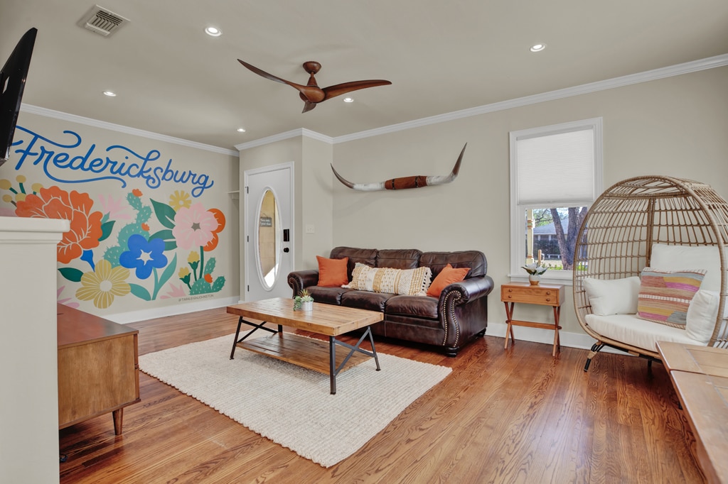 T'has donat la benvinguda a The Edison! Aquest allotjament de primer nivell es troba a només una manzana del carrer principal de Fredericksburg. Completament remodelat el 2022, The Edison ofereix un encant històric amb serveis moderns i ha estat dissenyat a mida per organitzar festes de núvies, famílies, parelles i escapades d'amics. Els bells detalls fan que aquest espai sigui còmode i digne d'Instagram alhora! Des de sopars comunitaris fins a còctels al pati, el teu grup tindrà una estada inoblidable de principi a fi.