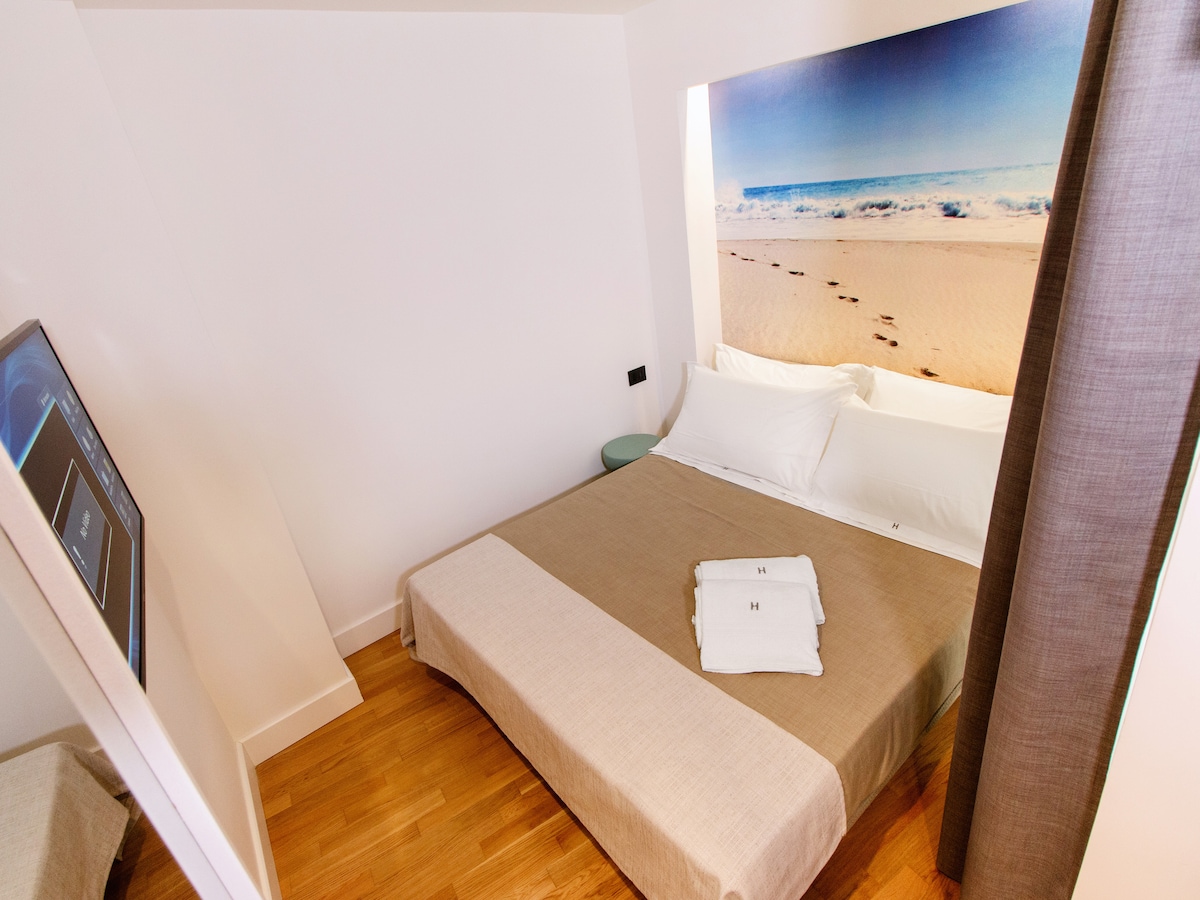 Camera matrimoniale con veranda vista mare, dotata di un bagno privato con una splendida doccia panoramica emozionale. In camera è presente uno scrittoio. Hibrido Boutique Hotel è situato in pieno centro storico e a due passi dal porto turistico, offre ai suoi ospiti la possibilità di usufruire di spazi comuni con vista mozzafiato sul mare e numerosi servizi per rendere indimenticabile il soggiorno.