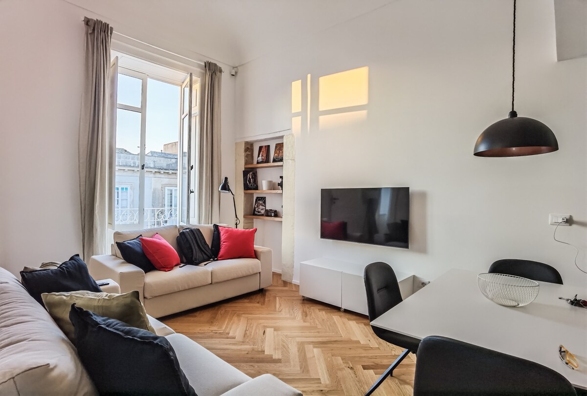 A pochi minuti dai maggiori centri di interesse turistico e a soli 15 minuti a piedi dall'ingresso di Ortigia. Apt. totalmente rinnovato con: -Open space di circa 45mq con balcone. Flat TV 52’’, tavolo 12pax, cucina attrezzata -Zona notte: due camere da letto, due bagni e una suite di circa 28mq con balcone vista Santuario -Arredato con elementi di design -4 condizionatori -riscaldamenti autonomi -high speed free wi-fi -Free parking. Per utilizzare il divano letto, informare l'host in anticipo