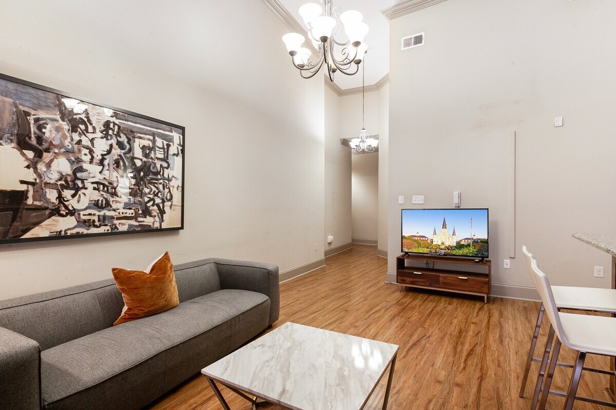 L'apartament està situat al CBD, a només tres illes del barri francès i a prop del districte Arts/Warehouse. L'allotjament, amb parets de maó vist, ofereix tot el que necessites i està moblat amb mobles de West Elm i Pottery Barn. A prop de molts dels millors restaurants i bars de la ciutat. Per a les parts de la ciutat a les quals no es pot arribar caminant, el nostre edifici té la comoditat d'estar situat en una de les línies de tramvia de la ciutat. Uber i Lyft també estan disponibles a tota la ciutat i per als trasllats a l'aeroport.