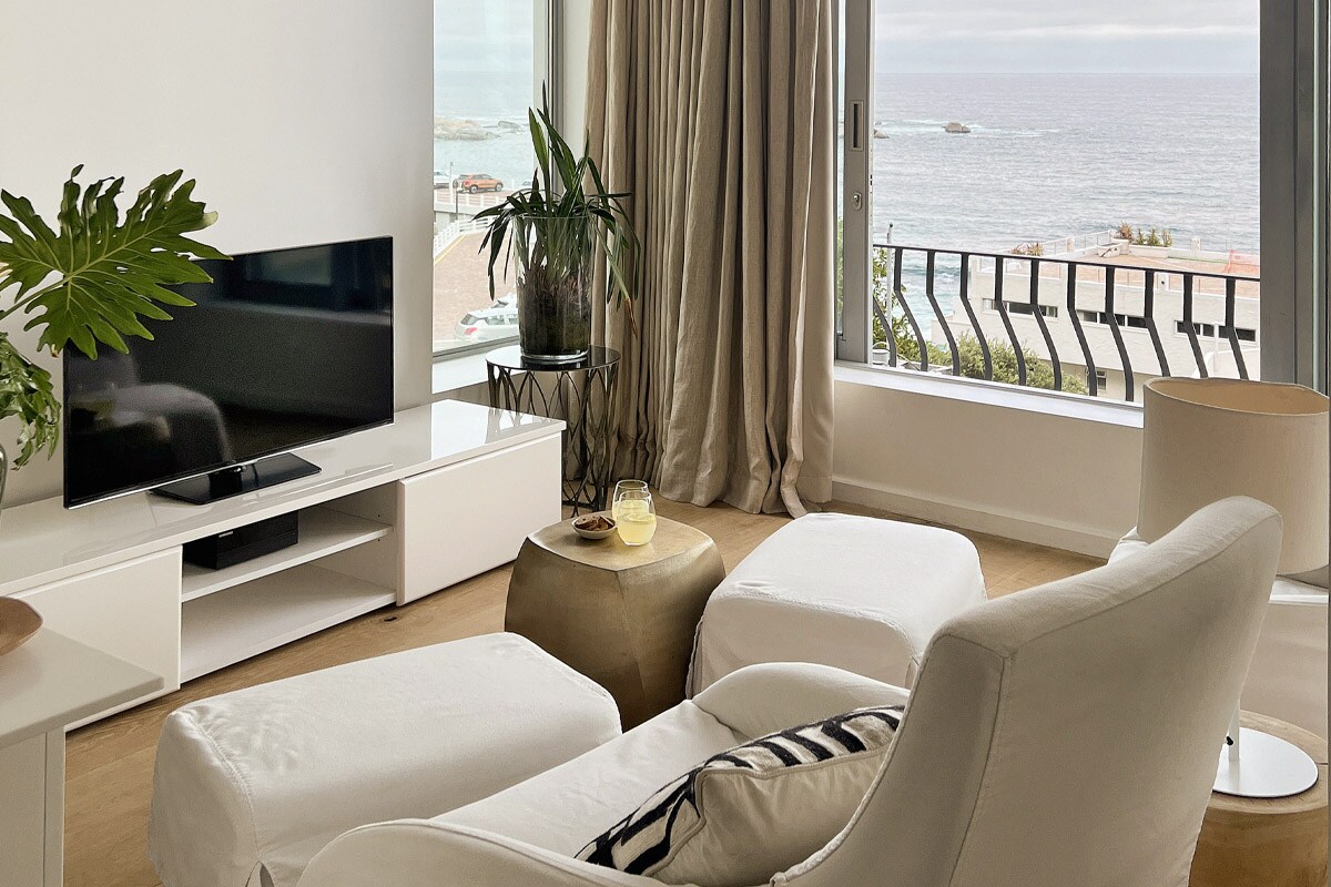 Smart and sassy, this spacious studio apartment does double duty as a luxury hotel suite and a home away from home. Perfect for a romantic getaway, a business bolt hole or a singleton’s sanctuary. Boasting the very best location on this golden stretch of the Atlantic Seaboard – the view from this apartment is jaw-dropping. Slide back the full-length glass doors and take in the soft azure ocean as far as the eye can see.