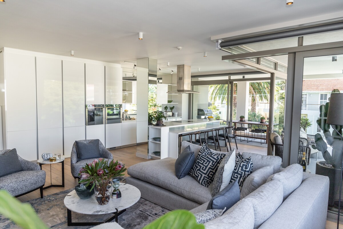 Welcome to Luna Azul Penthouse, a striking blend of contemporary design and coastal tranquillity in the heart of Sea Point. This beautifully curated space features exposed cement ceilings, high-end artwork, and a sleek, modern aesthetic that flows effortlessly from the open-plan living areas to the lush outdoor retreat. The lounge is both stylish and inviting, with designer furnishings, a wood-burning fireplace, and a seamless connection to the garden and pool area. Whether you're enjoying a qui