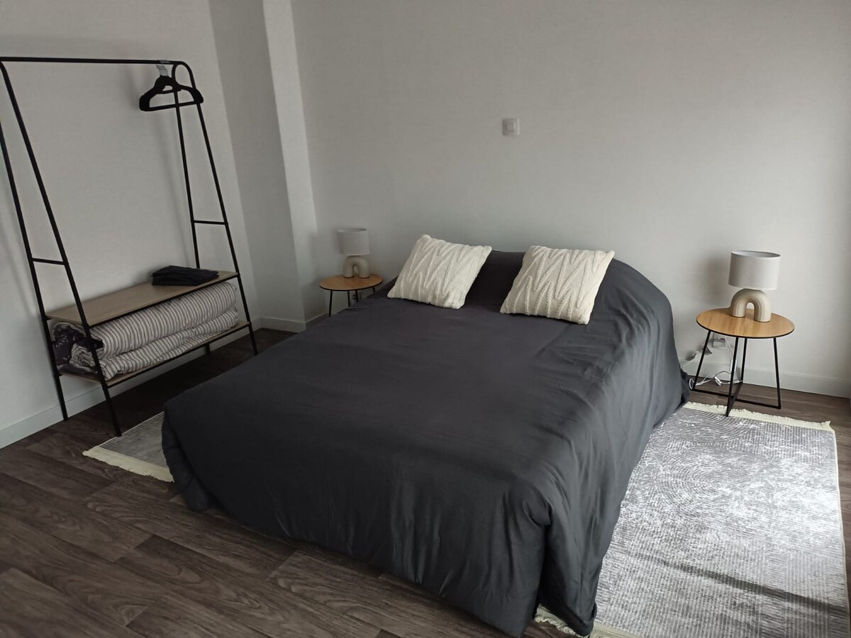 Estudi totalment reformat a la primera planta d'un edifici tranquil. Allà trobaràs: _aparcament gratuït davant de l'edifici _llit de matrimoni _accés independent amb caixa forta per a claus _wifi _Televisor LED amb Netflix _cuina completa _cafetera _microondes _llençols I tovalloles _rentadora a les zones comunes Estem a punt per donar-te la benvinguda per a les teves estades curtes o llargues a Valenciennois:)