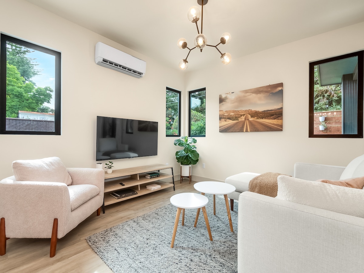 Et donem la benvinguda al nostre impressionant Airbnb a Prime North East Fresno! Aquesta joia amagada contemporània ofereix estil i comoditat. Tranquil·litza't amb el matalàs híbrid d'escuma viscoelàstica King o amb el matalàs d'escuma viscoelàstica Queen. Gaudeix de la cuina de disseny totalment equipada, els televisors intel·ligents i la connexió wifi gratuïta. Necessites treballar des de casa? No hi ha cap problema! Troba l'espai d'oficina aquí. Restaurants/ mercats a menys d'un quilòmetre. Woodward Park, a només 5 minuts. Parc nacional de Yosemite, a 1,15 hores