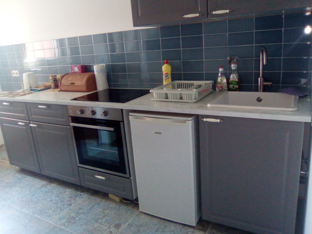 En aquest allotjament especial, es pot arribar a les botigues i a la connexió d'autobús a pocs minuts a peu. El pis es troba a la segona fila del carrer, per tant, molt tranquil i té una vista única llunyana. Per poder gaudir d'aquests beneficis, s'han de superar unes escales per aleshores, amb discapacitat per caminar. Una dutxa a peu, una cuina equipada d'alta qualitat amb una illa de cuina i menjador, un llit gran (180x200) i una sauna són alguns dels molts aspectes més destacats.