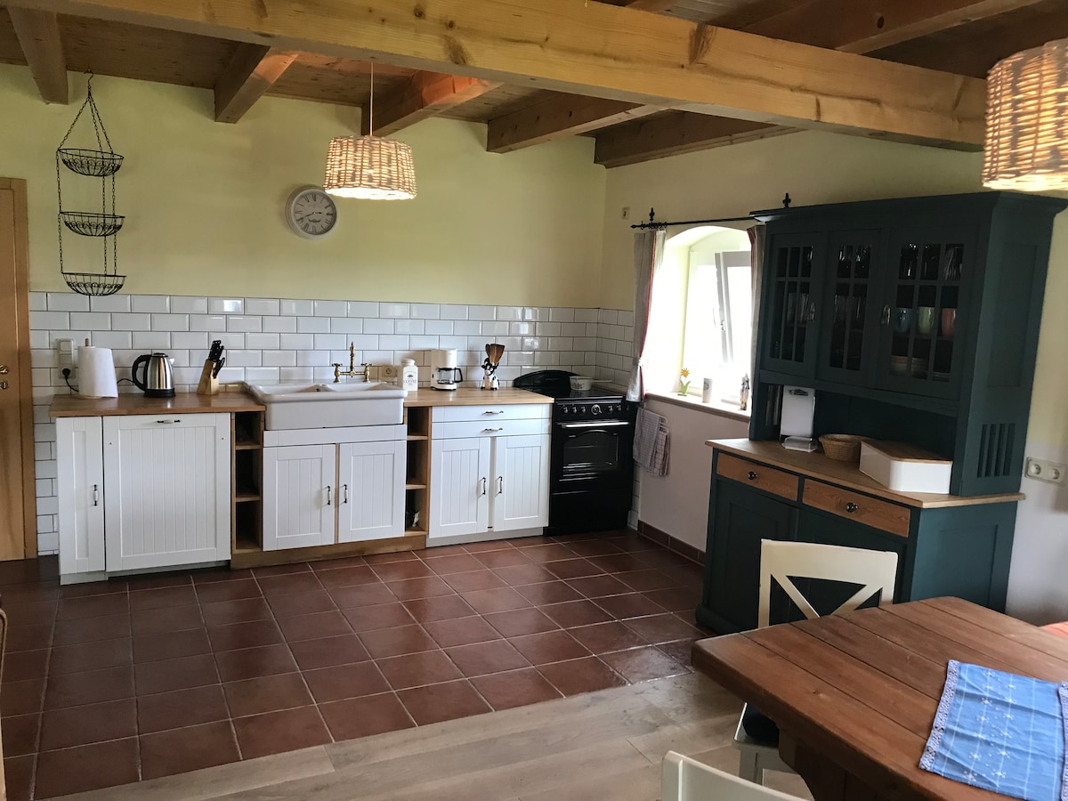 El "Hof am Siel" és una antiga granja a prop del poble de Ruhwarden. La part davantera és teva, des d'on tens accés al gran jardí: equipament de parc infantil i casa d'aficions fins a l'enrenou al contingut del cor per als més petits, racons tranquils per relaxar-se per als grans. Puja al vaixell del Sieltief o en bicicleta fins al dic, la divertida piscina o el graner de jocs de Burhave. La nostra granja d'aficions et convida a mirar, aquí no hi ha avorriment, però la relaxació està garantida.