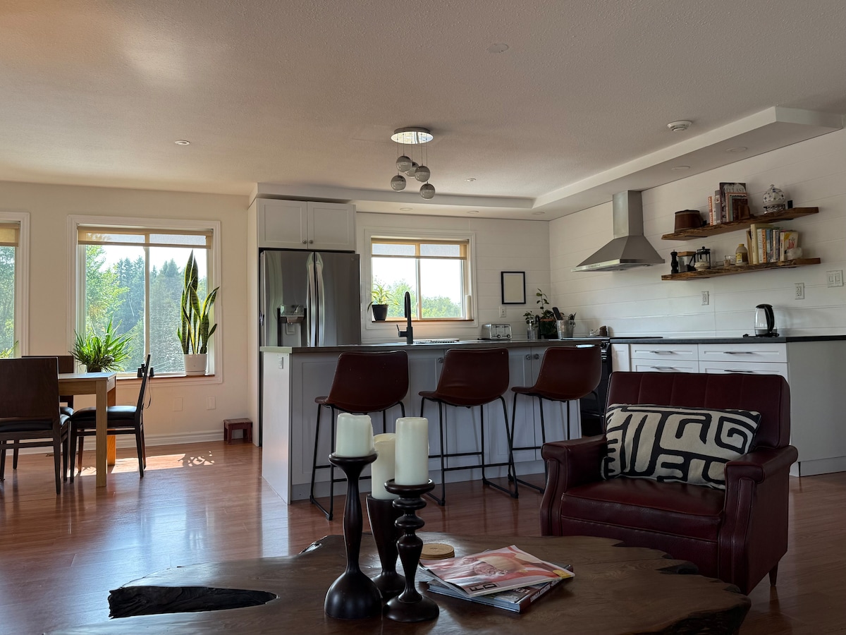 Enter Longview and discover endless forest views and an oasis on 88 private acres of wilderness parkland. A custom built chalet complete with all the amenities was designed with care and attention: Scandinavian box bed, rolltop cast iron tub, library loft, fireplace and a huge deck perched over the forest make Longview a truly unique experience and getaway. Ski, snowshoe, hike or spend time with the horses and never leave the property. Longview invites you to unwind and regenerate. Naturally.