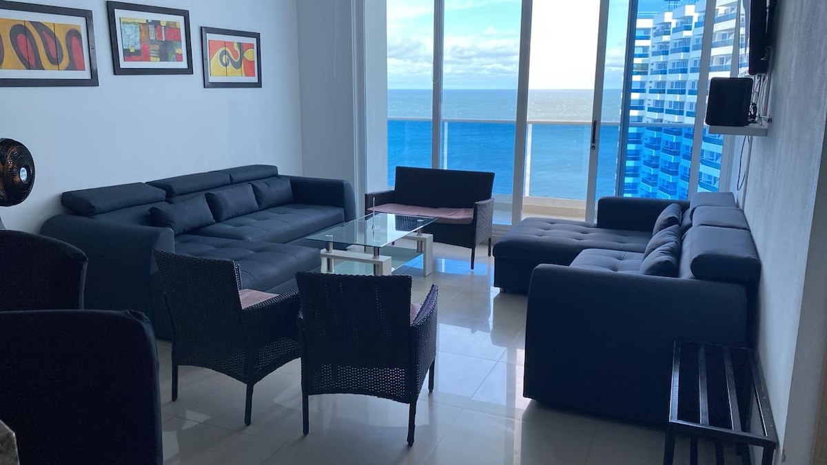 🏡 Luxurious Apartamento en Primera Line de Playa - Reserva del Mar, Piso 9, Torre 4 🏡 Gaudeix de la màxima comoditat en aquest espectacular pis amb vistes a la platja. Decoració sofisticada, tots els serveis. És el refugi perfecte per a les teves vacances. Relaxa't al teu balcó privat amb jacuzzi a peu de mar, escolta i dorm amb el so de les onades i viu una experiència inoblidable a Santa Marta. Reserva ara i converteix la teva estada en un somni fet realitat!