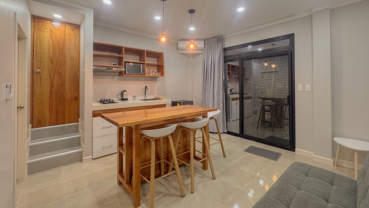 Relaxa't en aquest espai tranquil i elegant. Un apartament lluminós i còmode de dos dormitoris al cor de les Galàpagos, Illa Santa Cruz. Envoltat de vegetació, està situat a només quatre illes del carrer principal, a cinc minuts a peu del moll principal i a l'entrada de la badia de Tortuga. INCREÏBLE terrassa amb menjadors exteriors. Perfecte per a parelles o un grup reduït d'amics. Ofereix espais de treball, una cuina, una rentadora, tot el que necessites per tenir la teva pròpia casa a les Galàpagos.
