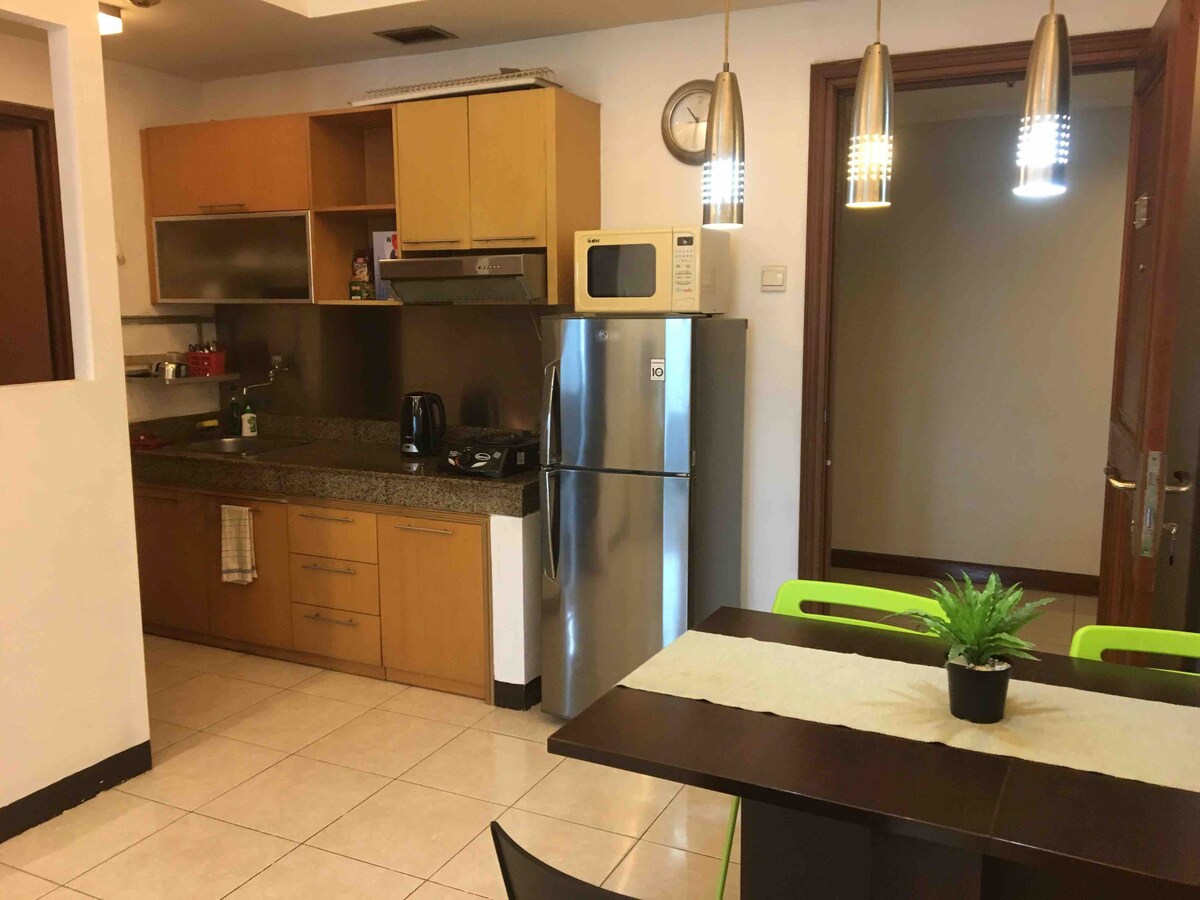 Immerse yourself in the vibrant heart of Bandung at this stylish studio on 10th floor of Parahyangan Residences. Enjoy modern amenities like a fully-equipped kitchen, high-speed Wi-Fi, and a 50" smart TV with Netflix. Indulge in resort facilities, contactless check-in, and nearby conveniences for a perfect staycation, holiday, or work-from-home experience. Now featuring a Reverse Osmosis drinking water, food waste disposal and new washing machine.