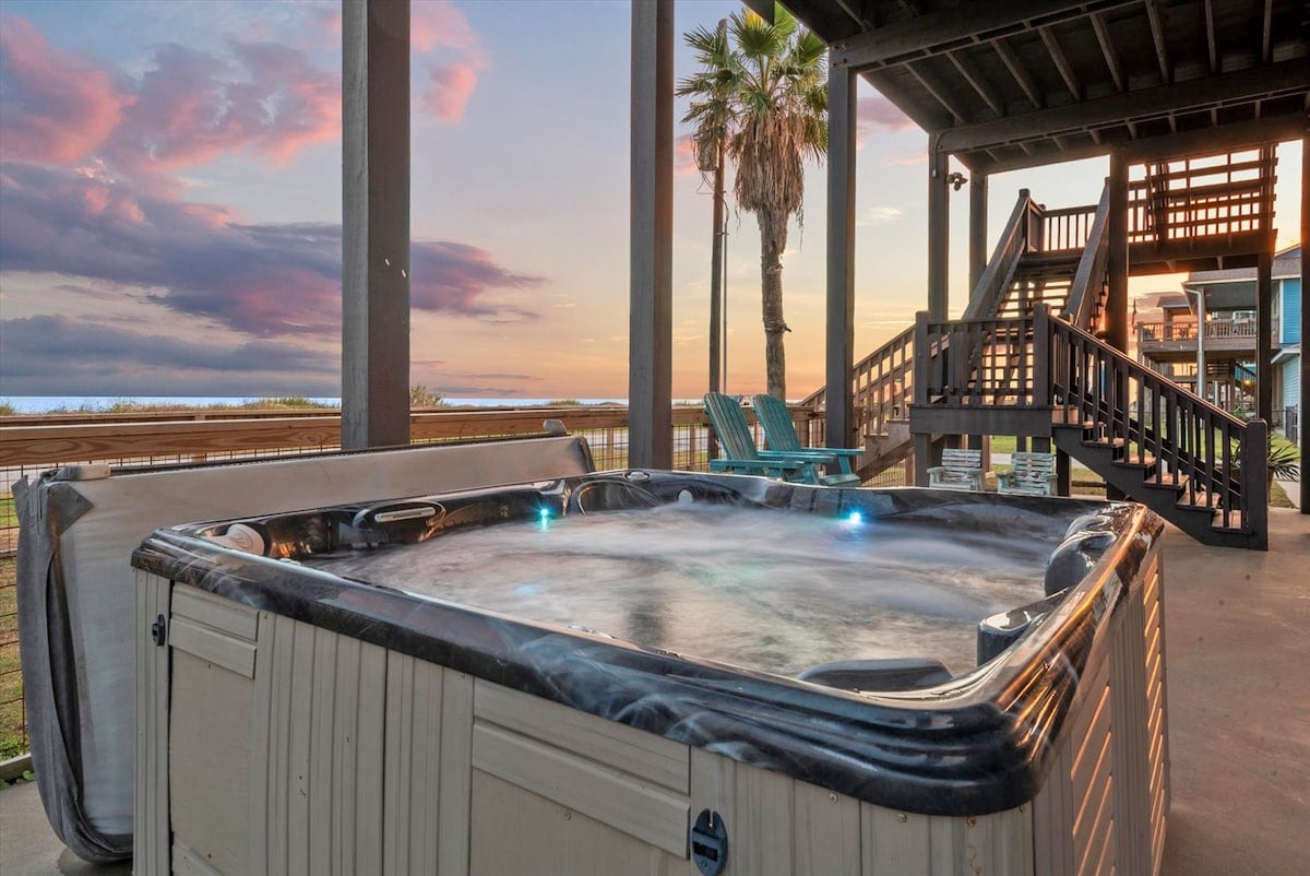 Vistes sense obstacles de l'oceà! Veure tot el recorregut per la platja fins a Galveston. Quatre dormitoris i 3 banys i mig. Molt espai i diverses terrasses per gaudir del sol. Tens espai per entretenir-te, dins de l'allotjament a la platja, però també a sota, on trobaràs un gran bar incorporat, propà/carbó vegetal b q , columpis, hamaca loft i dutxa a l'aire lliure. Tancat al pati. Passeig privat fins a la platja. Cuina gourmet amb rebost de majordom. La televisió està a totes les habitacions. El mestre té banyera d'immersió amb vistes a la platja! Capacitat per a 14 persones