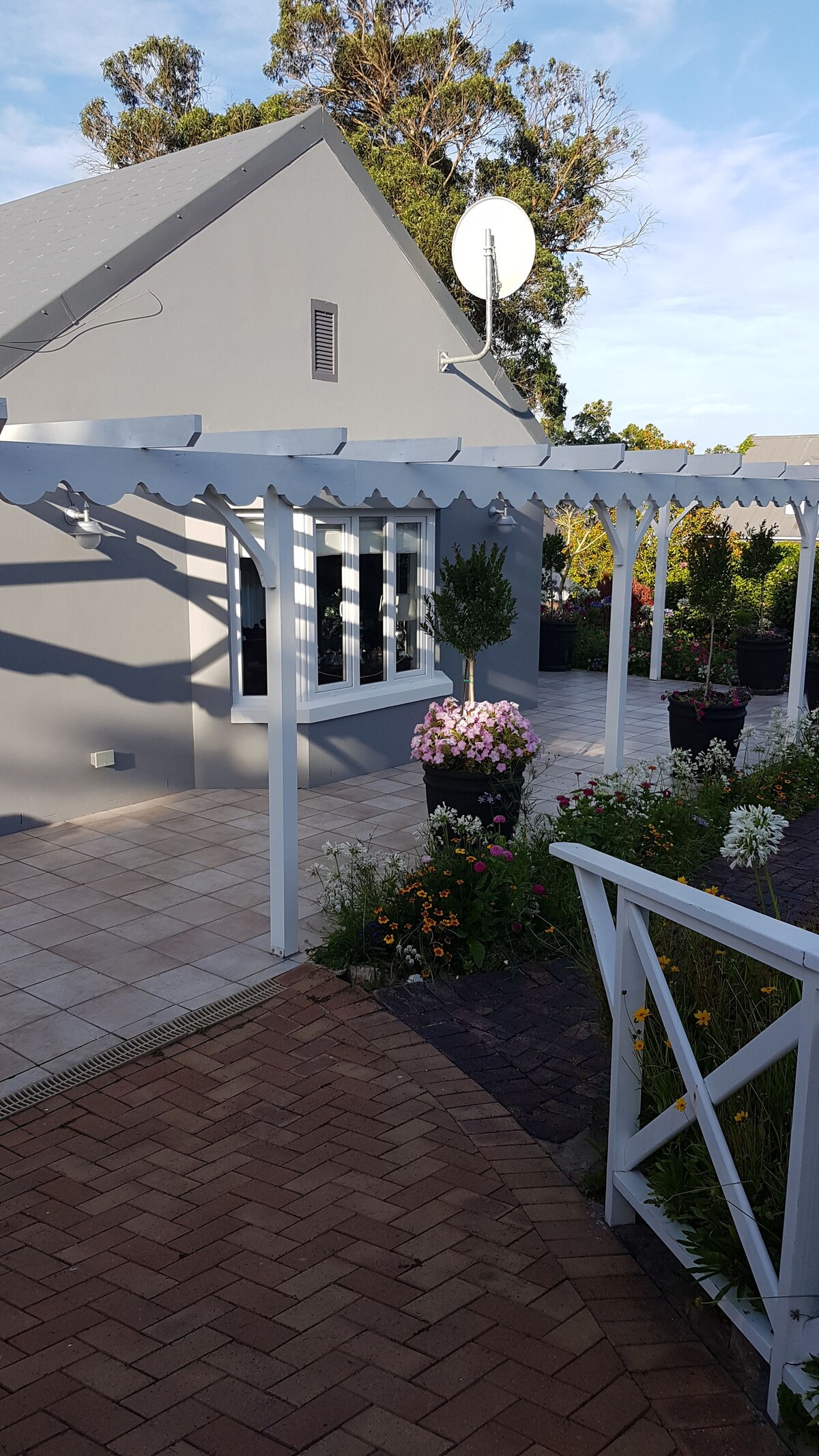 This private self catering cottage is newly renovated and tastefully furnished, it has a lovely sun downer deck with BBQ/Braai facilities. ....overlooking fields of ostriches and mountains in the distance. There is a hammock in the private garden for you to hang out in. The double bed has an electric blanket for winter evenings (June-Sept). The TV lounge has a sofa bed . This cottage is wheelchair friendly. The river walk is just 5 mins walk away and beaches/ restaurants a 5 min drive away.