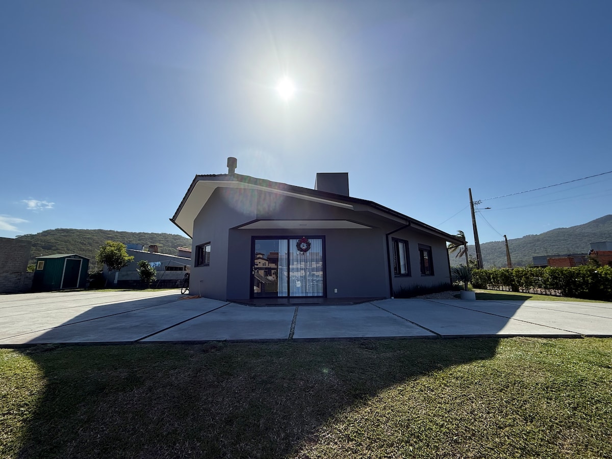 Casa d'una sola planta, gran i tranquil·la, perfecta per a famílies que busquen comoditat i funcionalitat. Té dos dormitoris, un amb bany privat, un bany per a convidats i un gran pati tancat, ideal per a nens. La cuina és espaiosa i està ben equipada, ideal per a moments en família. Ubicació privilegiada: a 10 minuts de la platja de Garopaba i del centre de la ciutat, a 5 minuts de Barra i Ferrugem, a 20 minuts de la platja de Rosa i a només 2 minuts del mercat i del forn. Tot el que necessites per a uns dies inoblidables a la costa!