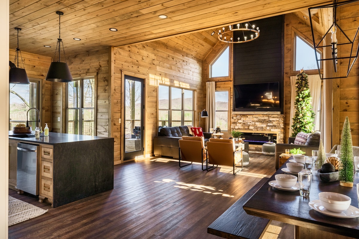 Aquesta cabana moderna, situada en un lloc privat entre els arbres, ofereix unes vistes tranquil·les a la muntanya i una autèntica sensació d’evasió. Per dins, l'espai presenta acabats de luxe i finestrals amplis que l'omplen de llum natural. Situat en una ubicació ideal just al costat de Parkway, a pocs minuts de les principals atraccions de la zona (a 10 minuts del Parc Nacional de les Grans Muntanyes Fumegants i a 12 minuts de Dollywood), és perfecte per explorar les Muntanyes Fumegants.