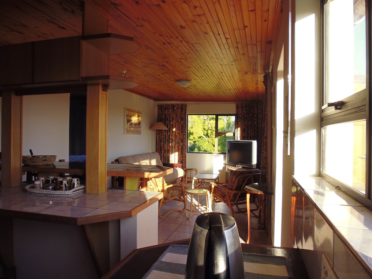 Gaudeix d'una vista panoràmica de les muntanyes Outeniqua des d'aquest estudi obert i lluminós. Envoltada d'arbres autòctons. L'estudi de la planta superior té unes finestres grans, una cuina totalment equipada, un llit «queen size» i un bany privat. La llum natural omple l'espai i crea un ambient acollidor. A la planta baixa, amb entrada privada, hi ha un segon dormitori espaiós amb un llit «queen size», bany privat, una petita taula i cadires.