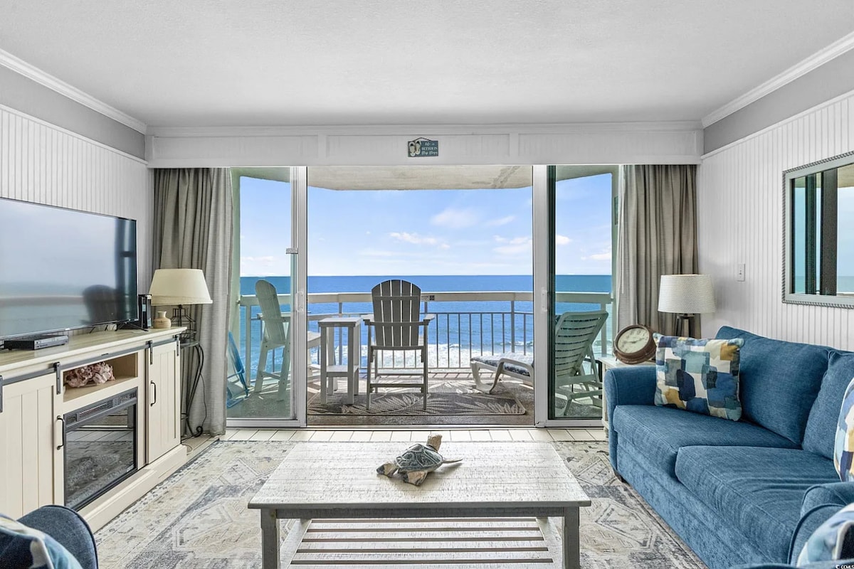 Un refugi lluminós i modern davant del mar on tot és senzill i còmode. Gaudeix de vistes panoràmiques, d’un disseny net i d’un espai acollidor pensat per desconnectar a la vora del mar. Entre el 5 % més ben valorat a Myrtle Beach 🌴 Luxe a primera línia de mar — Seawatch Resort 1003 North Tower • 🌊 Vistes a l’oceà des del terra fins al sostre que fan que la platja sigui el centre de tot • 🛋 Espai d’estar lluminós i modern dissenyat per ser obert, senzill i còmode • 🛏 Dormitori privat amb un llit «king size» còmode per gaudir de nits de descans • 🍳 Totalment equipat
