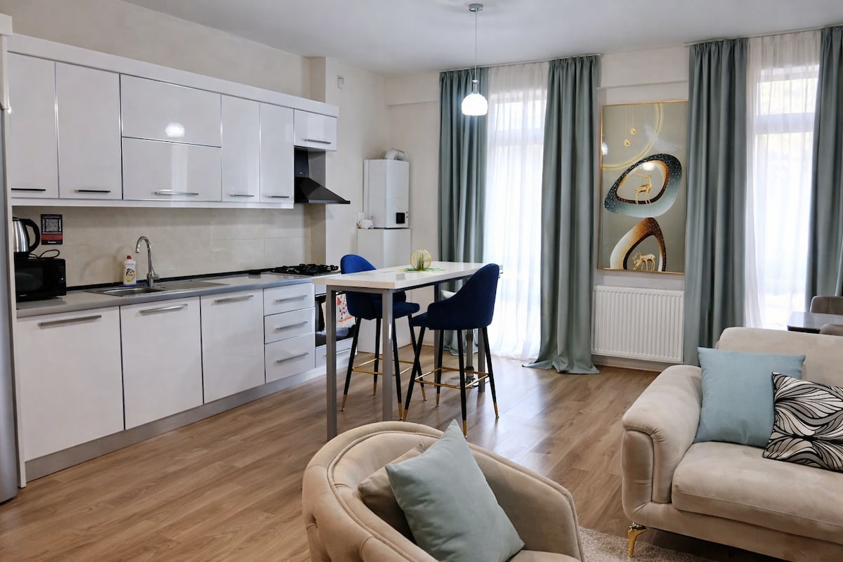 Et dono la benvinguda al meu pis familiar a Batumi - Casa familiar. He intentat omplir l'apartament amb tot el necessari per gaudir d'una estada còmoda, incloent-hi amb nens. Els avantatges clau són dos dormitoris separats, matalassos queen a nivell d'hotel, una cuina totalment equipada amb rentaplats i cafetera, un còmode sofà, un bany gran amb dutxa i rentadora, un gran balcó des d'on es poden veure les famoses postes de sol Batumi i una mica de muntanyes Adjara.