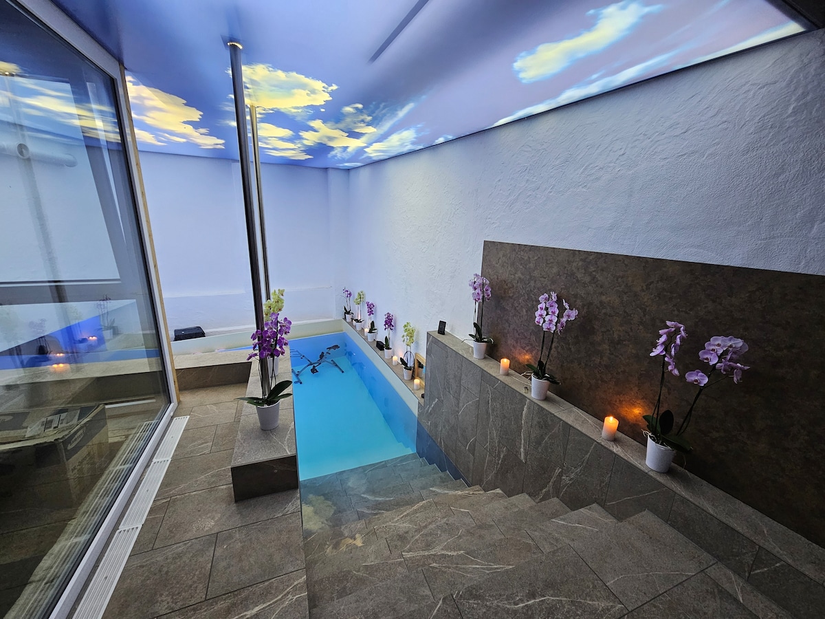 Pis a la planta baixa La descripció diu que és una piscina compartida. Nosaltres l'utilitzem de tant en tant. Hi ha la possibilitat de reservar la piscina tots els dies durant diverses hores. Tens accés privat a la piscina des del pis! A partir de principis de l'estiu del 2026 hi haurà una sauna exclusiva, que es podrà reservar opcionalment. Només es permet fumar a l'aire lliure! S'admeten animals de companyia, però has d'aclarir-ho ABANS de fer la reserva i especificar-ho a la sol·licitud.