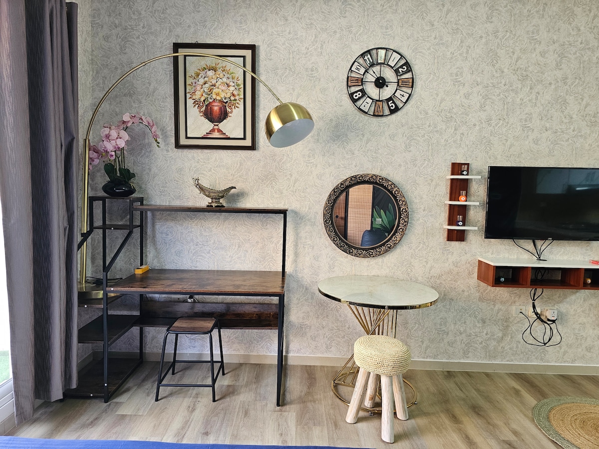 Estudi ✨ modern Haven amb vistes al 🌊 mar i accés a la platja🏖️! Relaxa't al balcó privat mentre gaudeixes de les vistes panoràmiques de l'oceà. L'apartament està dissenyat amb interiors elegants i la màxima comoditat🛋️, cosa que el fa ideal per a parelles o viatgers solitaris. 🌴 Surt a la platja o explora les atraccions vibrants de Dubai que tens a prop. Tant si et quedes aquí per relaxar-te com si ho fas per viure una aventura🌅, aquesta escapada ofereix l'equilibri perfecte entre elegància i tranquil·litat. 🌟