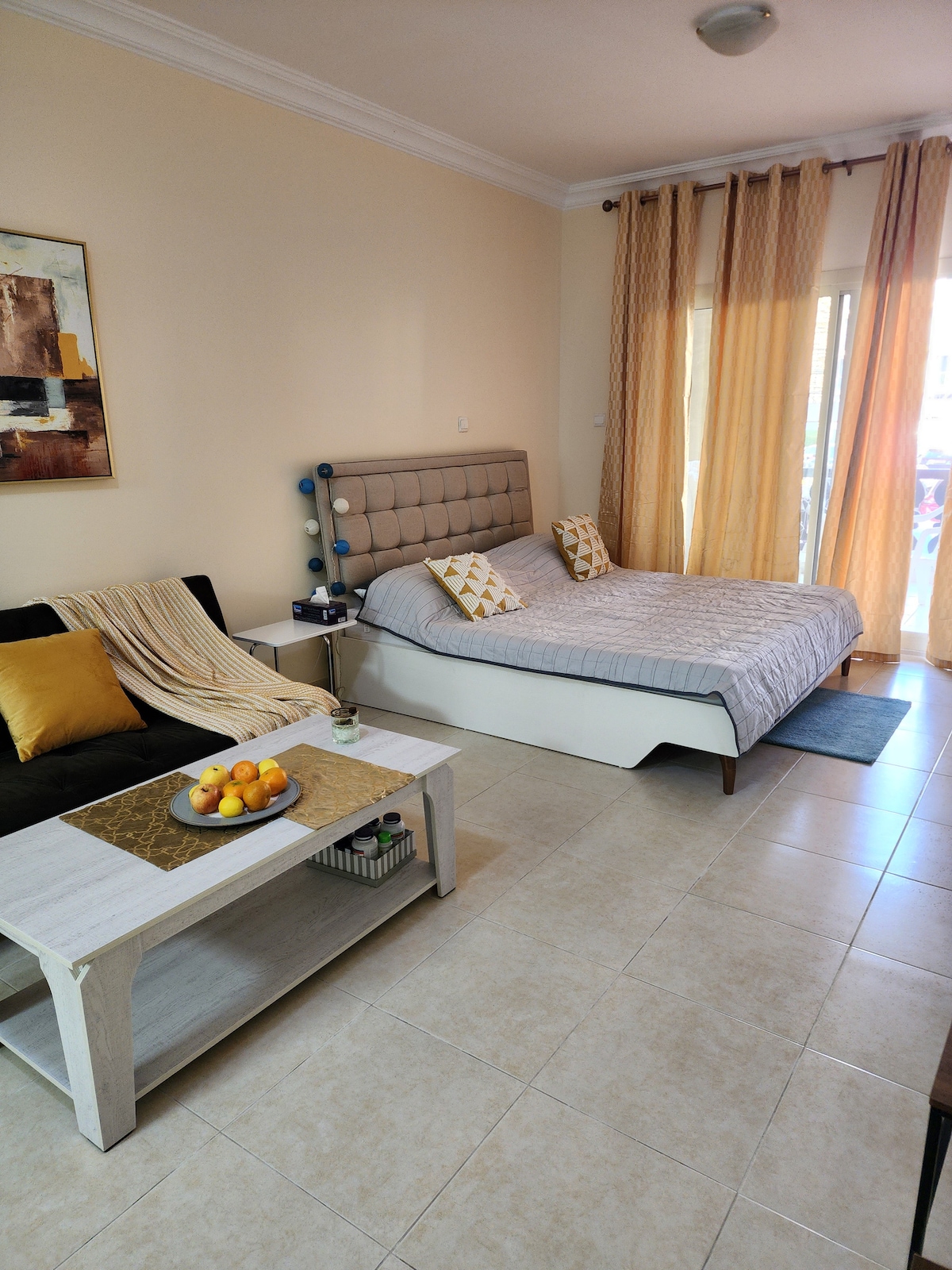 L'estudi ofereix interiors elegants i unes vistes impressionants al mar des del balcó privat. L'allotjament està davant d'una obra sorollosa 24/7 a l'illa d'Al Marjan, així que es pot esperar soroll en qualsevol moment. Malgrat això, gaudiràs d'una estada còmoda amb accés directe a una platja privada, piscina al terrat, gimnasos, restaurants, supermercat, bugaderia i molts més serveis còmodes a només 5 minuts. Hi ha wifi d'alta velocitat i una televisió intel·ligent perquè puguis connectar-te i entretenir-te durant tota l'estada.