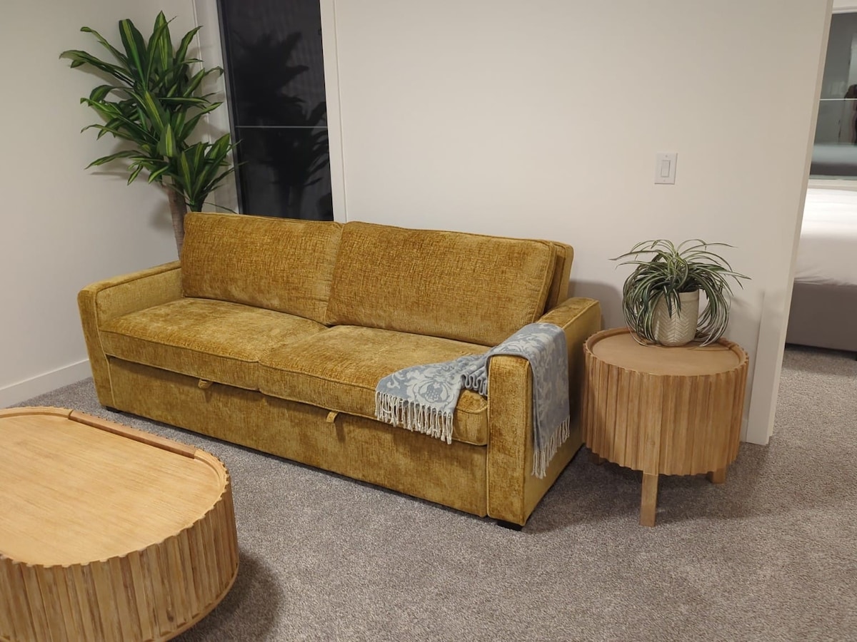 Allotja't al centre en un refugi modern de la vall del riu que està envoltat de bellesa natural i que té una ubicació cèntrica a Edmonton. La suite d'un dormitori inclou cuina, bany amb dutxa a peu i sala d'estar amb llar de foc de gas i sofà llit per als hostes addicionals. La planta principal de l'edifici conté un bistrot Dogpatch i una pastisseria de pa i mantega, que portaran un parell de dolços al matí. Necessites més espai? Dona un cop d'ull a River Valley Co. Suite 99 a AirBnB.