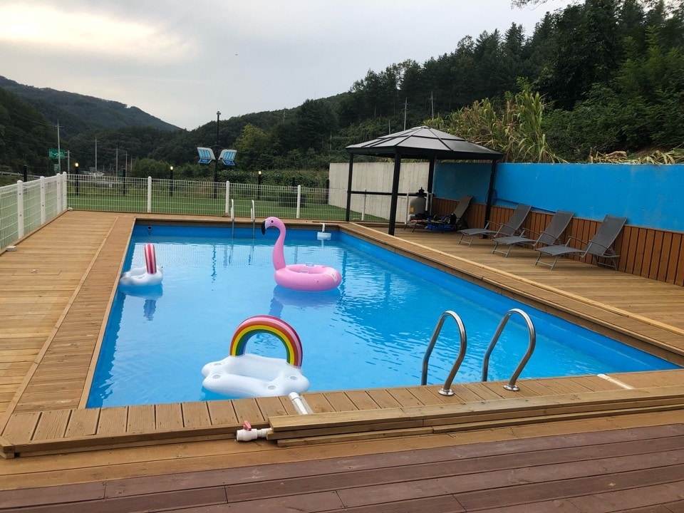 Es tracta d'una pensió per a gossos de gespa artificial/piscina de 600 pyeong. És el marge de la reserva de l'habitació del loft. Estàndard per a 2 persones i 2 gossos S'admeten fins a 4 gossos per a un màxim de 4 persones 30 000 KRW per persona si són més de 2 persones Pagament presencial.