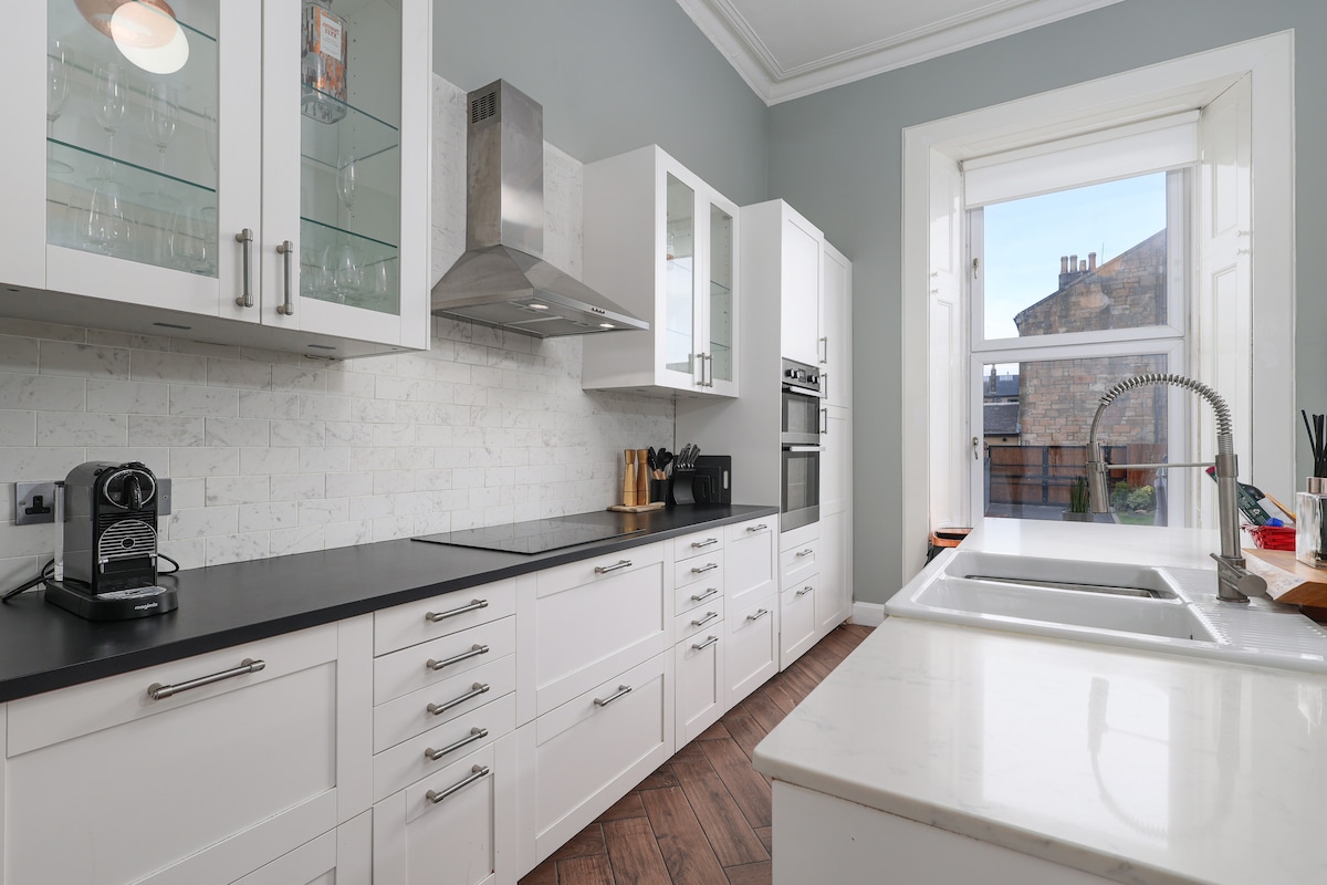 El nostre bonic pis al West End és a poca distància de la Universitat de Glasgow, els jardins botànics, Byres Road i Ashton Lane. És just al costat de l'estació de tren de Hyndland, que et porta al SEC en 5 minuts o al centre de la ciutat en 10. Les connexions d'autobús i metro també són genials. És un carrer tranquil i frondós amb una petita cafeteria encantadora a la cantonada, però a poca distància dels pubs llegendaris de Partick, dels llocs de brunch elegants de Hyndland, a més de botigues, supermercats i restaurants per a tots els pressupostos i gustos! (Per desgràcia, no hi ha aparcament gratuït al nostre carrer)