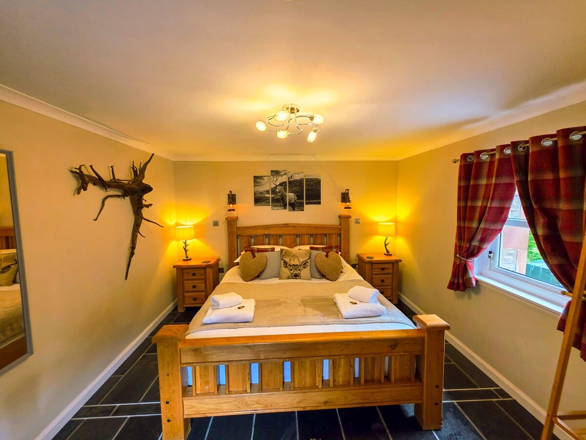 Stylish, cosy cottage, located rurally, yet not isolated, 11 miles from Oban & 36 miles from Glen Coe. The perfect highland hideaway to relax, recharge & reconnect with stunning mountain views. Ideal for a couple or family due to open-plan design. One double bedroom and one king size bed on open-plan mezzanine area. Blackout blinds in both sleep areas. Super-fast broadband. Fully equipped kitchen. No additional cleaning fee will be added on. Car essential, free parking to door. Max 4 people.