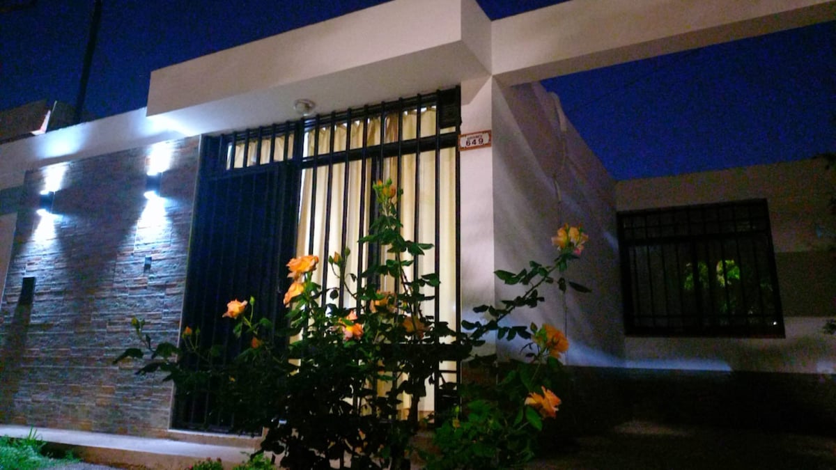 Disfruta de esta casa ubicada en una zona residencial y segura cercana al centro (10 m caminando). Ubicación estratégica para recorrer la ciudad o para ir hacia la montaña. Dispondrán de dos habitaciones, una en suite y otra con baño frente al cuarto, cocina completa, sala comedor con mesa grande y sofá, pequeño patio trasero con plantas. Asador. La casa es para 4 personas. Es la casa dond vivo y la alquilo completa cuando salgo de viaje.